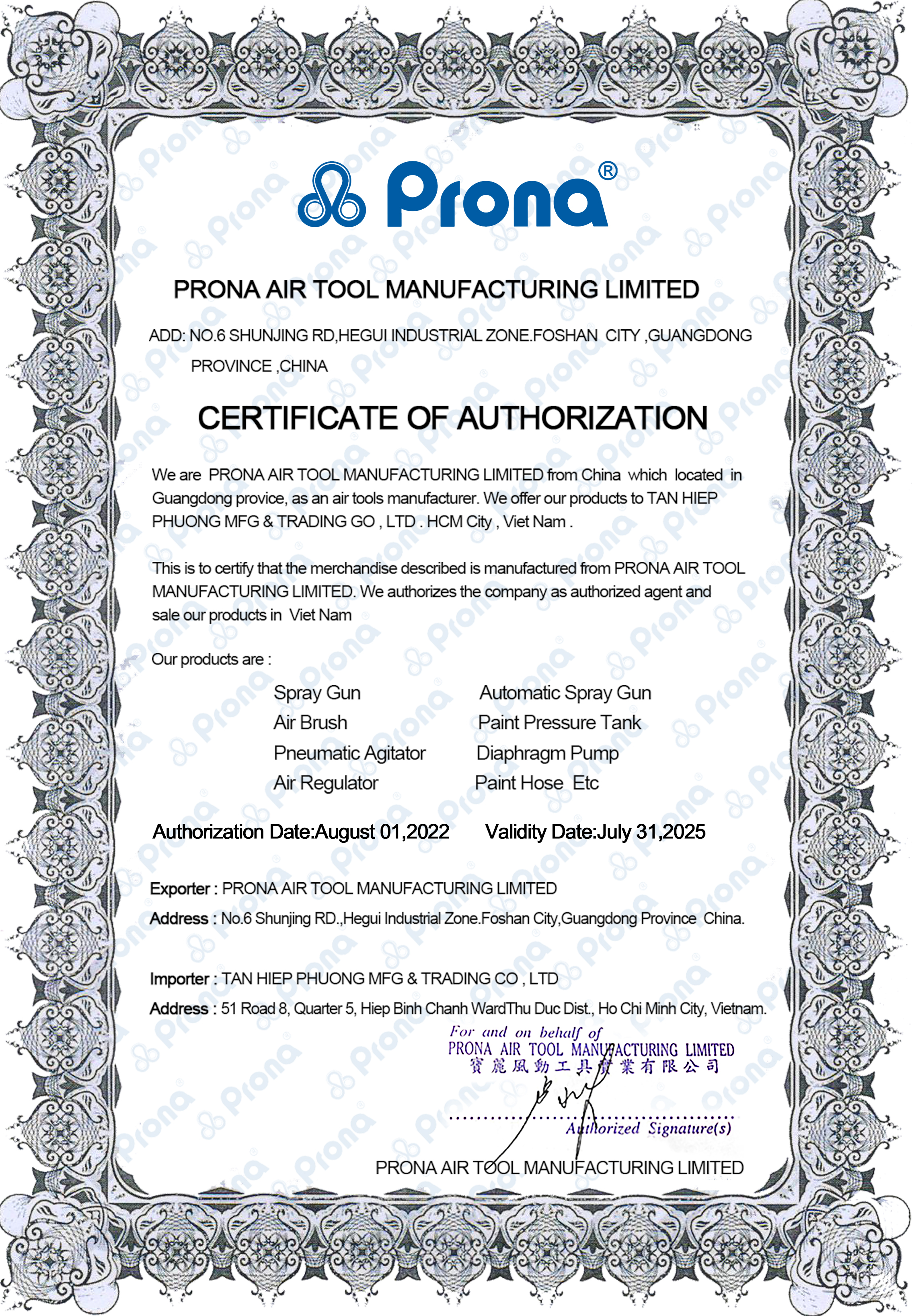 – Warranty Certificate have to have sign of Tan Hiep Phuong company